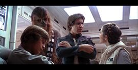 Han听到Luke失踪后,立即不顾劝阻去搜救。Luke被救回后恢复的护理站是本片中唯一一个三个人同时出现在一起的场景,仅仅1分31秒。