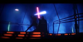 这场对决无疑就是Kernsher所指的触及Luke灵魂深处的东西。第一,与其说这是一场对决,不如说是Vader为Luke设计的一场原力黑暗面的训练,与Yoda的训练形成鲜明的对比,剧本中Luke没有完成训练的关键性就体现出来了。第二,Vader告诉Luke自己的真实身份,Luke不再是原来无辜的农场孩子。黑暗面流淌在自己血液中,无法回避否认,呼应了影片中点洞穴中的场景。