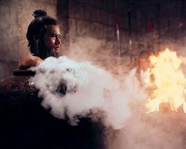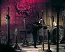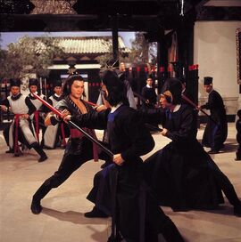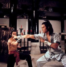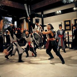 对于张彻的《五毒》,一直以来有这么两种为其在今天增添吸引力的说法:一是美国一杂志将其排为“世界最怪诞电影第11位”,另外一个消息则说这是昆汀最为喜爱的一部香港电影。经过本人运用高科技手段无敌Google的求证,应该说这两种说法离事实真相不远。2003年《南方都市报》说,美国的《娱乐周刊》(Entertainment Weekly)排出了全球Cult片前五十强,《五毒》位列第十一,另外一部光荣入选的电影作品是Fat哥的《辣手神探》,位列十八。顺便说说,《五毒》在功夫片五十强中排名第二,排名第一的正是张大侠的另外一部作品《少林与武当》。至于第二个消息的真实性,据说信源是参与Kill Bill这一严重犯罪行为的白眉毛刘家辉,据传昆汀有意重拍胡金铨老英雄的杰作《大醉侠》,刘家辉为其摇旗呐喊,声称昆汀对于香港武侠电影非常之熟悉,《五毒》是其最爱之一,其他两部分别为李小龙的《龙争虎斗》和刘家良的《少林三十六房》。