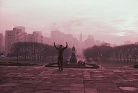 这就是洛奇强于运动鞋式励志之所在:他真实、真诚,更能给人的内心灌注力量。所以,最后的比赛貌似是全片高潮,但其实只是水到渠成的给出一个结果罢了。当洛奇在清晨艰苦训练,跑上高处独自振臂陶醉时,他就已经是他自己的君王。