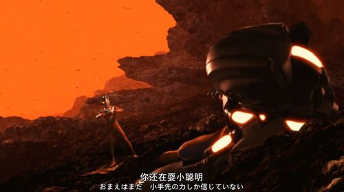 在第四话《男人间的誓言》中,诸星弹面对不争气的凤源,一番训斥的话语成为了全剧的经典台词。时隔三十年后,同样的话语又由凤源转交给了年轻的日比野未来(梦比优斯奥特曼)。