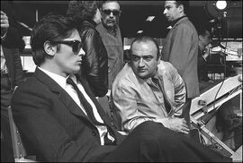 Ennio Morricone与意大利导演赛尔乔·莱昂内(Sergio Leone/1921~1989)自1964年至1984年合作的20年,是两人艺术生涯中的黄金时代。两位奇才怪杰在世界电影史上共同写下了熠熠发光的一页。1964年,莱昂内拍摄了他的第一个三部曲——“赏金三部曲”中的第一部:《一把金币》(A Fistful of Dollars),1966又拍摄了三部曲的第二部:《为了多几块金币》(For A Few Dollars More)。电影音乐史上首次出现的粗砺、潇洒的小号主题和空寂、辽远、漫不经心的口哨独奏,令人耳目一新,给各国观众留下了深刻的印象。