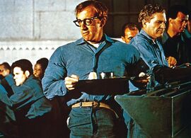伪纪实风格的开篇让我们迅速进入了一个无所事事又不知所终的人物主题,爵士乐、嘈杂的街巷、海报、新闻报道,伍迪·艾伦用一组画面迅速而准确地展现了一个美国六十年代的风情画。说到这里不得不提一下六十年代的美国。