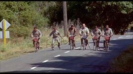 片中将所有“社会的”角色全部以一种调侃的方式进行剥离,最为明显的就要算是那场街头抢劫的戏,这本是个过场戏,却透露出伍迪·艾伦想在这部电影中表达的终极含义。弗吉尔拿着一把手枪抢劫一个正在读报纸的男人,当男人转过身一下子就认出了他,两个人曾经是中学同学,而现在,一个当了江洋大盗,一个当了FBI的探员,两个人在亲切的对话之中还不忘自己的职责,一个要抢劫,另一个要抓捕。亲切的,关于过去美好回忆的对话夹杂着抢劫的命令,一方面这是两个儿时玩伴在回忆,另一方面,他们又不能丢掉自己的“职业职能”,在剥离了“社会角色”的同时让我们感到了无可奈何的尴尬,笑料自此产生,令人忍俊不禁。