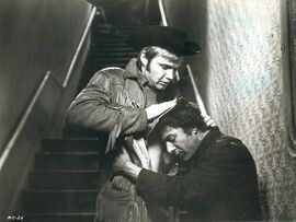 警察打着电筒走过来,Ratso竟也夹杂其中。Joe被逼到铁丝网处。Annie被警察带走,同时指证Joe是那个人,是唯一的那个人。Ratso冷笑。