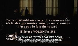Yves Montant在出演了这部片子之后,被美国拒绝入境签证。多方努力之下,他终于拿到一张24小时的签证,从而得以赴美参加他另一部获奖影片的颁奖仪式。当晚他马不停蹄地参加了一场脱口秀,在现场,他告诉主持人说,签证午夜就要过期,他马上就要去赶飞机。在这期间,有关部门一直在亲切地关照着他。这时摄像机镜头一转,观众们可以看到一个便衣尴尬地消失在幕后。