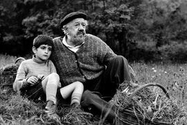这部1967年的电影虽然是黑白的,但电影里的画面优雅浪漫处处体现出田园的风光与乐趣。置身其中,虽然战争的阴云时隐时现,但我依然在影片书写的田园诗篇沉浮。我甚至怀疑电影的导演也是位像陶渊明一样具有隐士情怀在山水田园间怡然自得的诗人。不过,战争结束后,老人与小孩的融洽相处也告一段落了。小朗曼走的那一天,天上下起淅淅沥沥的小雨,老杜邦夫妇撑着雨伞望着载着小朗曼的车在雨帘中渐行远去,忧伤之感油然而生。