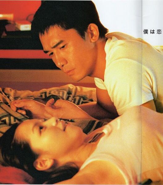从张国荣的一分钟到金城武的凤梨罐头,似乎都在述说恋爱的时限性,这次最直接——“人的一天有24小时,8小时工作,8小时睡觉,还有8小时不知道可以干什么,所以找个你看他不讨厌,他看你也算顺眼的人一起搂搂抱抱亲亲,打发掉多余的8小时”。那时候的梁朝伟还带着《重庆森林》时期的率真和幽默,不用每次都提香肠嘴,从他对初恋情人说“糟了,忘记你叫什么名字了!”就能感觉到这家伙体内汹涌的喜剧细胞。只是,这样的人偏偏碰上了王家卫,于是媚眼变成了电眼,傻笑变成了微笑。所谓萝卜蔬菜,肤浅点来说,带喜剧风格的梁朝伟才是我要的那杯茶。