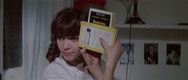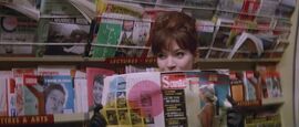 布莱希特的陌生化(Verfremdung)理论对戈达尔影响颇深,这位新浪潮主将几乎在他的每部影片中都运用了达到间离效果的手法。首先,影片中的人物间或会对着镜头挤眉弄眼或插上一两句与观众互动的话,从而打破“第四堵墙”,撕下电影时空完整性与连续性的假面。犹记戈达尔曾让《周末》中的演员直面摄影机喊出“真是部烂电影,我们遇到的都是疯子”,吊诡的是,本片中的布里亚利在尾声时分朝观影者直抒胸臆的话竟与之迥然相异:“我不知道这是一出喜剧还是悲剧,但肯定是部杰作。”其次,这种打破“第四堵墙”的间离手法还可进一步发展为直接暴露摄影机及其相关的拍摄程序,揭破电影身为“缺席的在场者”的媒介本性。《女人就是女人》正是以这样一种方式开场:影片依次闪过三位主演的近景画面,他们的名字覆于其上,直至红色大字的片名亮相,与此同时,渐次传来三声画外音:“灯光” “摄影机” “开拍!” 在两年后的《蔑视》中,戈达尔以两个完全明示电影机制的长镜头作为开篇,由纵深向前景逐步运动的摄影机对准观众,直至与观众一侧的摄影机景框完全重合为主,相当于用两个摄影机“对视”随即“亲吻”对接的方式开场,唤起观影者对基本电影机器的反思。最后,戈达尔还热衷于应用穿插于电影中的无关镜头,这些镜头常常是纯色的大号字体,有时则是打断连贯性叙事的无逻辑画面,这两招在高达最先锋也最晦涩难懂的《周末》中均可见诸银幕。本片也在片头和片尾插入了红黄蓝纯色的大字,但这些符号有明确的所指,参与了叙事进程,且未在影片中途登场,故间离效果不够彻底,《周末》中反复穿插的是无意义的片名与日期,干扰性十足。