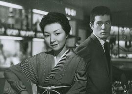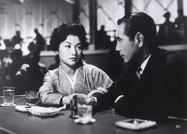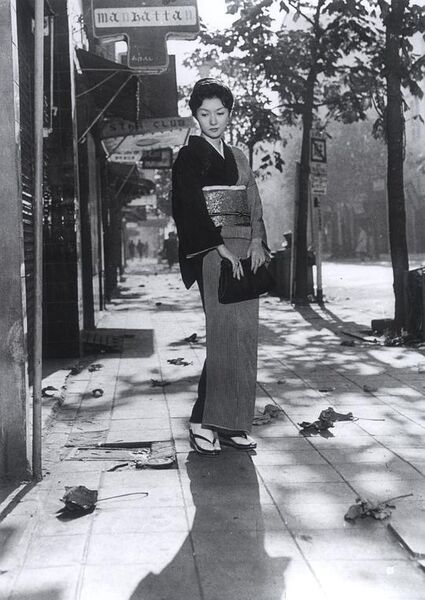 同时,成濑也在用镜头关注着战后日本传统女性意识的分崩离析。电影中惠子几乎都身着和服,而她的室友兼同事却经常穿现代装。评论家寺井美奈子在《一个日本文化论》中探讨了日本人对和服的心态,和服是展现日本民族技艺的一种方式,和服是用心来穿的,而和服本身也被认为有人的灵魂栖息在里面。惠子无疑被塑造成一个传统的日本女性形象,但在现代社会中又显得格格不入。银座晚上酒吧关门后与客人一起坐车离开的才是当今社会的主流。道德的丧失是日本战后快速发展所付出的代价,当然这不是成濑的主题,这是以后日本新浪潮的主题。但这位在自尊与自卑间徘徊的惠子的确是当时日本社会的集体写照。