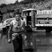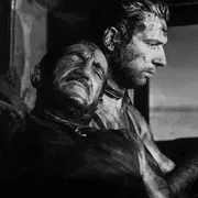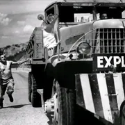 相比之下比较喜欢《恐惧的代价》,也想稍微唠叨两句,这个电影拿的是当年的戛那金棕榈和柏林金熊,最出名的两大国际奖项都被他拿了,也足见这个电影的不俗之处,。两个半小时的电影从情节上大致分两部分,前几十分钟节奏较缓,把一个落后荒凉且与世隔绝的小镇大致描绘出来,电影发生在二战后的中美洲某小地方,战争使他们背井离乡,逃到这个小地方,天气炎热,生活艰难,当战争结束,回国也成了问题,这些逃来的人根本没有钱离开这里,只能继续在这里忍受生活上的煎熬及对家乡的思念。导演通过各种侧面描写,反复说明这里的艰苦,这也为下段几个人敢于冒险去运炸药做了铺垫。其中有个细节印象较深,在这个地方有色人种反而是有地位的的人,而欧洲的白色人种倒成了穷苦受欺压的,这在50年代的欧洲绝对是为很多人看不惯的,而印象中克鲁佐也是有白人之上思想的,所以这个细节也是进一步强化那些白人希望早日离开那里的原因。