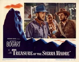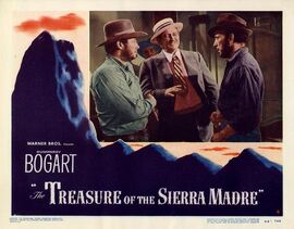 众所周知,约翰·休斯顿与亨弗莱·鲍嘉的名字,就像约翰·福特与约翰·韦恩、马丁·西科塞斯与罗伯特·德尼罗那样密不可分,从休斯顿导演处女作、鲍嘉银幕成名作[马耳他之鹰]伊始,两人各自在执导与表演领域的出类拔萃勿庸置疑,但更起到决定性作用的,还是这对金牌搭档在个人价值观上的另类契合——如果说1941年的[马耳他之鹰]还带着些对侦探风潮的迎合意味的话,那1948年这部[碧血金沙],则达到离经叛道的纯粹极致,彼时好莱坞二战英雄主义题材尚未退出舞台,社会喜剧也已经粉墨登场,在观众审美越发趋于高大全化、唯美化、嬉皮化的阶段,约翰·休斯顿和亨弗莱·鲍嘉却反其道而行,以挖掘人性黑暗面为己任,一个视主流价值观为无物,一个则一而再、再而三地自我颠覆银幕英雄形象,这样两位冷面君子碰到一起,作品的残酷程度可想而知——[碧血金沙]中杜比西这个角色的人性蜕变,自掘坟墓的下场,正是两人合力营造的产物,本已够人惊叹,但其实在拍摄中,杜比西的结局更为触目惊心:休斯顿完全忠于原著小说,赤裸裸地展现出杜比西被强盗手刃,刀起头落的血腥过程,但由于当时审查制度严格,休斯顿在压力下不得不重新剪辑,作为导演,其忍痛割爱的心情可想而知,但更值得一提的是,作为片中暴尸惨死的角色,鲍嘉对此举暴跳如雷的程度也着实令人吃惊,这位实力派巨星听说自己断头这一段被剪掉后当即怒而质问:“一个人的脑袋被砍掉而已,这有什么不行的?”这两位老大不小的影坛知己,在片场却是不折不扣的老顽童,约翰·休斯顿在片中客串出演被杜比西三次乞讨的美国游客,鲍嘉则转而为这段执起了导筒,并故意为难老兄而NG了数次,一时传为趣谈——[碧血金沙]虽然银幕上残酷非常,但银幕外的拍摄过程却堪称华纳其乐融融大作坊时代的典范。