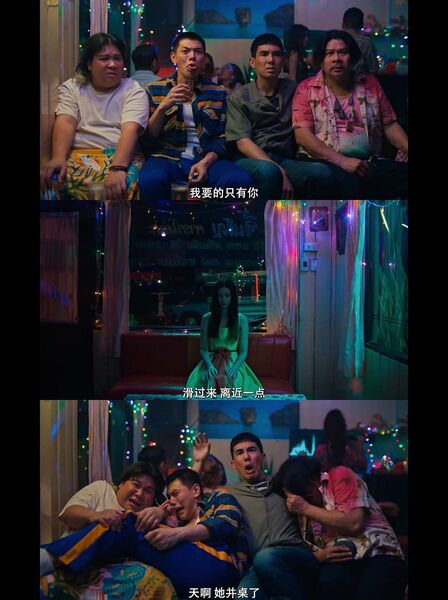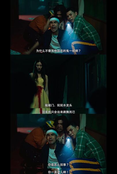 在第一次发现真的有鬼又被鬼缠上的晚上,四人跑去KTV定神,结果别人高歌着“来呀来呀近一点呀”,女鬼也随着节奏越来越近,这段剪辑真的会让人笑出猪叫;