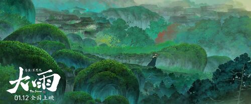 相较《大护法》全片的黑红色调,《大雨》选择了截然相反的青绿色调。它不再那么有血色,却同样让人在离场后,反复思考电影中的那些表达。“隐蛟”如欲望寄生进人体内,只有大雨把一切冲毁,才能让人有醒悟过来的可能。