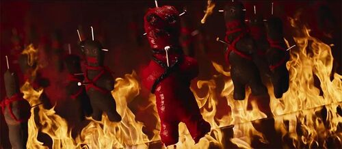 嘶哑的男低音有节奏地吟唱着,画面被染成了让人发怵的猩红色,缝纫机在织布上踩线,鲜血缓缓淌过,磨具飞速地转动中,火焰熊熊燃烧,一个被捆绑的小玩偶被架了起来......诡异、神秘又渗人,这氛围感直接拉满