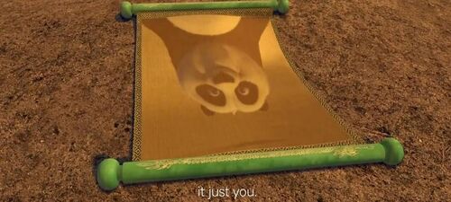 在功夫熊猫1中,阿宝凭借极短时间的特训就能够与残豹交手,并最终以无师自通的无锡铁指扣(The Wuxi finger hold)击败了残豹。有了上文提到的设定,我们可以知道这场对决从残豹打开神龙秘籍就已经分出了胜负。阿宝经由鹅爸爸的点拨理解了神龙秘籍的真正意义,不是因为拥有神龙秘籍让你变得特别,而是你自己相信自己是特别的的时候,你就已经拥有了神龙秘籍的力量,所以在神龙秘籍里你只能看到你自己。