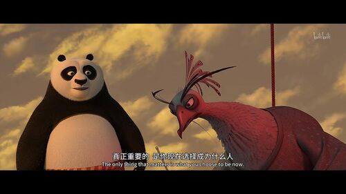 在功夫熊猫2中同样有这样的表现,在阿宝终于愿意面对自己过往的伤疤时,他掌握了心如止水(inner peace)的力量,并明白了过去不会定义自己是谁。