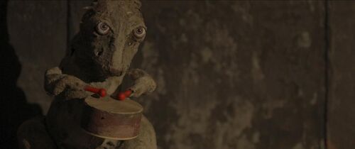 另外还有一个元素,导演对眼睛有着特别的喜爱。《危险警告》中他就喜欢拍摄演员的眼睛演技,用那个墙上的破洞去聚焦眼神戏,敲鼓兔的眼睛也格外突出,这次又弄了假眼和盲人达西。对于假眼奥林,导演还特地拍了个短片《How Olin Lost His Eye》发在网上,讲奥林怎么被一个突眼怪人把眼睛给拽掉了。