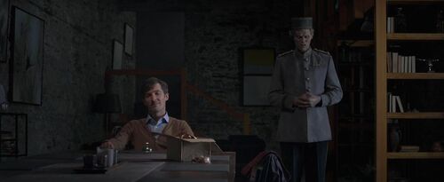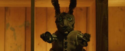 可以说这是导演对自己钟爱元素的一次重组再编,心脏病死的假释犯的扮演者就是《危险警告》 的男主饰演者乔纳森·法兰西(之前错认成奥林了),另外奥林的演员Tadhg Murphy此前出演过《黑帆》《北方人》等作品,他真在13岁时因意外失去一只眼并佩戴假眼,把这种个人特色融入角色是他的标志了。而且达西在店内开箱子时,镜头最后给了一个拿着镲突然打了一下的兔子玩偶,那也是致敬前作突然敲鼓的敲鼓兔。