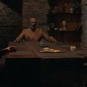 而泰德的结尾也很有想法了,人们都以为木头人大开杀戒的时候,那个铃的伏笔终于派上用场了。欢乐的配乐,苦逼的幽灵和该死的渣男齐聚一堂,自以为是的傲慢恶人要被鬼收了,导演说他一定会被鬼魂撕碎。其实这段的面对铃和按下铃之后的四周注视与回头,也完全是导演2010年首部短片《他最后还是死了》(He Dies At The End)的重新演绎。短片是一个男人在电脑上回答一些诡异的问题,镜头不停看向背后紧闭的房门,最后来一个Jump scare,短片片名也很符合泰德的留白结局了。