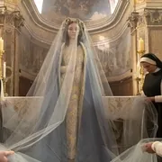 你们看下面的对比:一个圣母、一个新娘,最后结局都是满脸是血