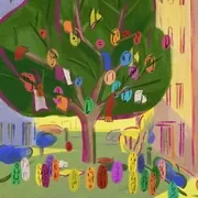 这片子的画风实在是太有趣了,单色人物配合简单线条,一拉远景就每个人都是代表色的小圈圈,紫色的妈妈会生出蓝紫色的儿子,黄色的琳达妈妈是橘色的,绿色同学一家都是绿的,警察都是蓝色的,这种设定有非常明显的家族感,也让画面按照颜色区分对比更好辨认。五颜六色的人配五颜六色的巴黎,每个房间都设计的可爱又温馨,画面的变化也很丝滑,格外为这个故事加分。