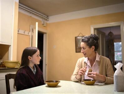 批判现实主义主旨是英国电影乃至英国整个社会价值观的传统,爱尔兰自然深受其影响。但是本片的批判是温和甚至不乏温情的。Cáit 的家。极其昏暗的光影,Cáit藏于黑暗中。姐姐们显得多么冷漠。