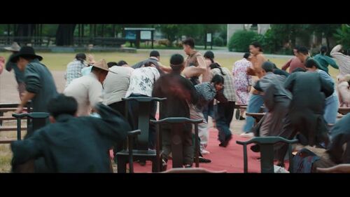 老头子3枪,草帽1枪,蓝衣服1枪