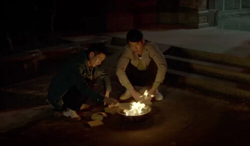 有一个场景我想作为本文的收尾:外公逝世之后,被家人拒绝的小飞(柯震东)在阿龙(白宇帆)的陪伴之下给外公烧纸。这一场景也对应着小飞在姐姐陪伴之下给过世母亲烧纸。这两幕前后呼照的场景以及它的气质,使这个故事从整体上生发出了一种类宗教性的氛围——苍茫、隽永、似真似幻、难以捉摸又不可言说。回不了的家,无处可寄的思念,可否借着纸钱传递给彼岸的亲人呢。阳世通往阴间的轨道也是钱。火光的燃烧映照着人间的荒诞、荒唐、荒凉,也映照同性群体渴望亲情认同的那一点微弱的希望。