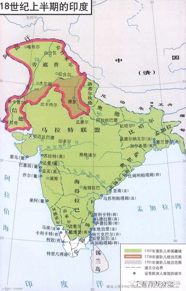 马拉地帝国的首都在孟买附近的Pune. 人种跟北部的Hindu族有点区别, 他们的上层一直是从事雇佣军职业, 骁勇善战,本来有机会在英国人之前统一印度的一大块,可以碰上了阿富汗军神,也是国父 艾哈迈德沙·杜兰尼 . 艾哈迈德击败马拉塔人,事实上摧毁了印度面对西方侵略时惟一一支可能进行有组织抵抗的力量,使得英国东印度公司在随后一百年内逐步控制了印度。