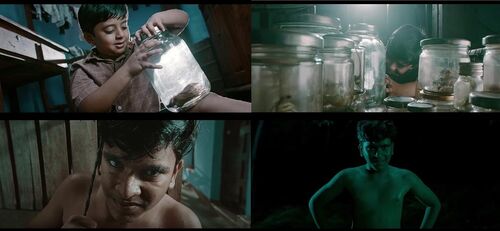 开篇,电影讲述了一个男孩从小遭父亲的虐打,在这样的环境里,小男孩从小就异于常,他喜欢搜集动物尸体,再鲜血淋漓的场面,他都可以面不改色的捡起尸体的一部分收藏起来。
