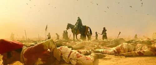 也反映在不同人物、不同场景里的考究装束,如阿赫迈德·沙的战袍盔甲就多达三层,饰演者桑杰·达特是在高温天气下,穿着这样的衣服完成了整个战场上的戏码。