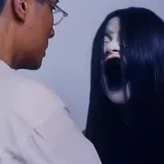 这时,故事发展到高潮了,阿明赶到女友家,女友在他面前疯狂地吃药,生死悬于一线,在她体内的女鬼不停地笑,不停地叫他,你过来啊,你不是很爱她吗,懦弱的阿明却没有过去,只是打了救护车的电话。这个地方我感觉到阿明死亡命运已经注定。