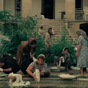 我看到30分钟的时候觉得这部片是暗喻伊朗当时的政治局势(要先说明我并不清楚当时的政治局势,只是猜测),当时的伊朗当权者就是个双腿残废不能自立的弱女子,有三方势力想夺取国家遗产,其一是继父想夺产做土皇帝(这个人也是很狡猾的,他想勾引女主的贴身丫环必有坏心思),其二是未婚夫想夺产做地产大亨(这个未婚夫很狡猾的,他总是把链锤丢给女主,让她杀继父,想借刀杀人),片中提到他想买楼再租给英国人,侧面描写了当时的伊朗有英国介入;其三是偷情者想夺产逃往西方国家。一群妇人在大水池边,一边洗衣服一边聊八卦的画面很有意思很有市井味。当女主杀了继父对仆人说:“把他扔进地库玻璃缸里用浓酸溶解他”,其实这句话是对应了她自己那个鱼缸的,意思是现在被困的是你了继父。地库玻璃缸像柚子一个个置放着的画面让我想起了《异形》里的异形种子囊。