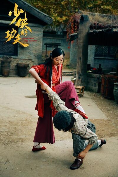 叶少侠一路跌跌撞撞、失去师父的仇恨没有让他疯狂心智。除了师父的从小收留,不教武学却在打扫、擦桌、挑水、劈柴等日常生活中的潜移默化里打下了坚实的武学基础。起初埋怨颇深一心报仇的叶少侠在尚武镇遇上了归隐化名的武学宗师周不愁。一副乞丐模样的周不愁是叶少侠的提携师父,这位师父不仅仅是亲自教学,而且介绍了一对内家拳和外家拳的范梁师父,还为叶少侠配备了一位心灵导师 红颜知己——这位美貌少女红姑扮演者傅筱婀娜娇媚的红色衣裙,挽起的长发,举手投足间透出江湖的侠义同时又难掩其气质与靓丽。可以说,红姑贯穿故事始末堪称灵魂人物推动剧情走势,也是《少侠好功夫》里一道靓丽的风景线。