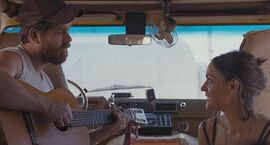 我觉得这部电影还是蛮舒服的,它比较具有公路电影的色彩,又融入了民谣音乐的主题!在911事件背景中,两个愁眉不展的人偶然相逢,淡淡压抑的空气、一辆濒临报废的面包车,以及无可预期的目的地,很轻巧的拉慢了电影的节奏。生活有时候就是无可奈何却又心有所期,这俩内心焦躁的家伙在一开始相处的并不愉快。可是当吉他的弦无意拨动,音乐渐渐流入,就像一阵凉风吹入他们心中,也许此时这对男女才真正开始认识。当美丽的风景不断的走近又远去,当一首首民谣被哼起,似乎他们忘记抱怨了糟糕的车子和遥远的行程,而是开始关心肚子饿不饿了。看这部电影让我想起了《菊次郎的夏天》,其贯有淡淡的哀伤情感,舒缓平和的情节,以及带有记录感觉的镜头,还有路上那些遇到的有趣的、可爱的、真挚友善的朋友,都会加深对电影的亲切印象。