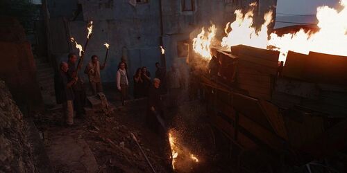 因此,看完《船只》我更加坚信,它跟《朝圣的路》都不是偶然,两部片子的设定中「逝去的孩子」其实就是现实生活中那个曾令他无比骄傲的 Charlie,而艰辛的朝圣之路、用小学遗骸拼凑的船只则是他对 Charlie 战胜挫折重新振作的希望。但正如尼采所说:希望是最大的灾难,因为他延续了人的苦难。 Charlie 不止一次给过 Martin 的希望,从 21 岁大荧幕上的一夜成名,再到 90 年代小荧幕上的成功复出,然而当希望破灭儿子也就成为他无休无尽的苦难根源。
