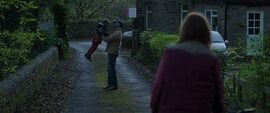 小鬼克林特开溜了。找得安娜好苦,直找得死去的比利都跑出来跟她一起找。小河边她哭泣地跟比利说我该怎么办。比利说没事的,对自己要有耐心。是的,没事的。小屁孩就在大树下猫着。他出来了,问她在跟谁说话。小屁孩是那么的冷静,安娜是那么的六神无主。小小的克林特简直就是比利的再生。安娜踩着单车载着克林特回到家,克林特跑着扑在他爸爸的怀里。