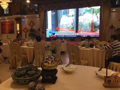 早茶,我是跟150位叔叔、爷爷、阿姨、奶奶一起,在“伦教人家”边看电影屏幕的CCTV13的新闻联播,边大吃大喝。