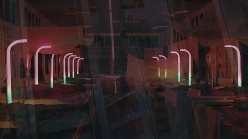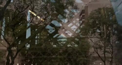 片子像第一个叠化转场中,两个朝着不同方向运动的画面(空旷的街道和密集的桥体建筑结构),就有着空间感的交错变化。
