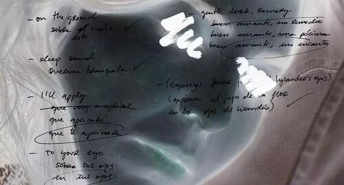 先是老片风格的电影和喃喃自语式的独白,古典乐的声音延续出画面,转到现实画面(两人依偎在公园椅子上),突然画面和声音变成得截然不同转向了类似于梦的画面(卡米粒的念莎士比亚的独白)。