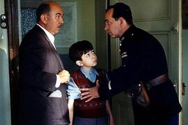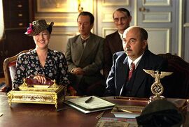 起初巴蒂诺尔先生肯定不想做这个英雄。他的生活很小康,有媳妇,有长大成人的闺女,有肉铺产业足以维持一家生计。德军的占领也没有对他的生活造成实质性的影响,甚至还让他收益——因为女婿举报犹太邻居逃走,使他们获得了邻居的房子——这是对顺民的奖励。巴蒂诺尔先生可以承受他的顾客的非议,但是当他面对那个犹太家庭唯一逃出来的孩子时,他再也不能心安理得。因为是他女婿的举报毁了这孩子一家。因为是他的喋喋不休阻拦了这家人的出逃。因为他现在很不光彩地住进了这孩子的家。而在这孩子曾经的家中,此时此刻,正满是逮捕他的家人、霸占他的财产纳粹军官。彼时,巴蒂诺尔先生对西蒙的收留,与其说是同情心,不如说是亏欠感。电影中在描写犹太人一家被警察带走的时候有个以巴蒂诺尔先生为主观视角的交代镜头,那个镜头中,透过纳粹的车窗,犹太一家望着巴蒂诺尔先生,眼神阴郁。我想就是那个瞬间,内疚就在巴蒂诺尔先生心里深深种下。因此,出于亏欠感,巴蒂诺尔先生把西蒙安顿在阁楼上,出于亏欠感,巴蒂诺尔先生用尽心思想把西蒙送到安全的地方,出于亏欠感,巴蒂诺尔先生允许西蒙的表姐妹们来看望他——虽然这样被发现的几率会大大增加。慢慢的,亏欠感变成了责任感。这最终促使巴蒂诺尔先生在被身为顺民的女婿发现藏匿了西蒙之后做出他的选择:杀死女婿,带着孩子们出逃,从此离开他温馨的家,离开他的妻子和他亲爱的女儿。