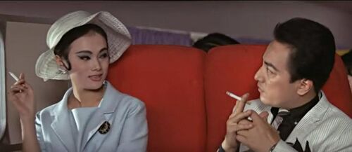 飞机上他先跟邻座歌女周萍萍搭讪,周萍萍约他抵达香港后去夜总会听她唱歌。接着,他又跟郑白兰相谈甚欢,他向郑白兰介绍自己是靠赌博出老千为生,郑白兰表示自己跟他志趣相投,也喜欢玩两把。