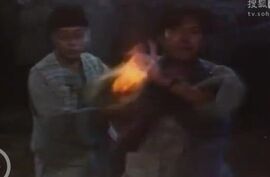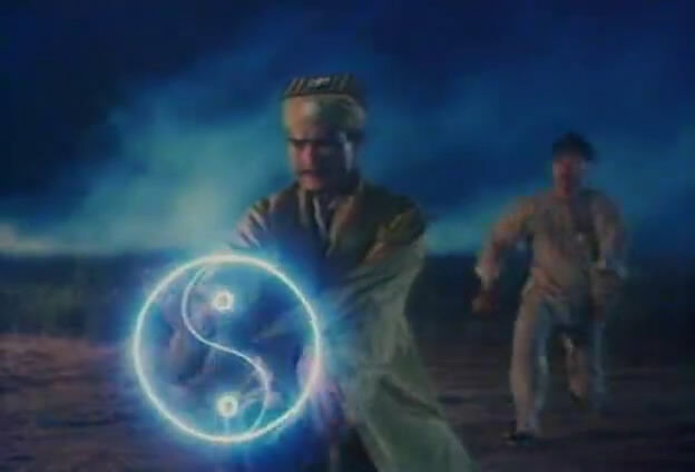茅山派先天八卦阵收鬼那段,运用了早期的CG特效,场面非常大,九叔的几位师兄弟各自拿出了看家本领,有道长使用镇魂伞,有的使用类似戮魂幡的旗子,还有位道长使用一种类似金钵的法器,尽显各派绝学。
