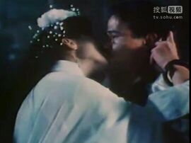 《僵尸先生》系列电影中肯定少不了美艳的女鬼角色,这一部是吴家丽演女鬼。影片中段九叔率领徒弟抢棺材菌,需要把菌放在口中保存,奈何这东西极阴属性,凡间人只能含一会儿,需要用嘴接力,这样可好,九叔含着菌冷得实在受不了,直接用接吻的方式传递给了女鬼,一下子就让女鬼爱上了自己。这一段,英叔献上了自己的银幕初吻!