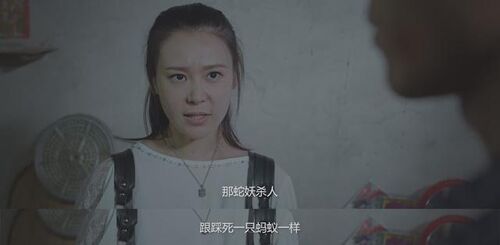 接下来又到了有声播报环节饿了,观众不是看不到蛇妖嘛,没关系,有人物台词描述啊,“站起来两层楼高”,“一巴掌能拍死头牛”,甚至还说“蛇妖杀人,跟踩死一只蚂蚁一样”,