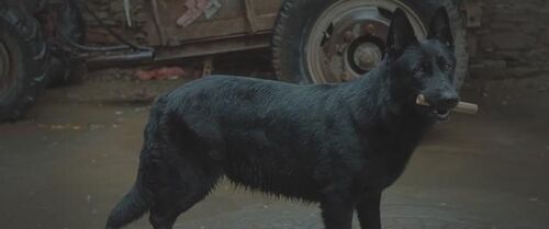 人吓人,吓死个人,众人一合计,慌的不行,但这个村子它没有现代生活条件啊,还处于通讯基本靠狗的年代,于是就想到让大黑狗去送信,别人家送信都把纸条放在竹筒绑在狗身上,片里直接高能,让狗嘴直接咬着,也不怕要是半路看到个骨头,这求救信不就下落不明了么?