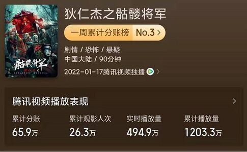 《狄仁杰之骷髅将军》首日票房只有65.9万,从网友一水的差评来看后劲严重不足。