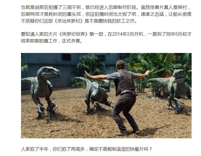 事实上,国内网大,或者说成本不可能提供那么高的院线电影,如果要制作恐龙题材的电影,恐怕耗资是巨大的。