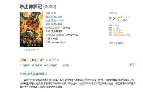 但即便是这样,国内恐龙爱好者们,对恐龙电影的追求,还是想方设法的,别看《杀出侏罗纪》的豆瓣评分不高,只有3.2分,但在腾讯视频那边点播量还是不错的。